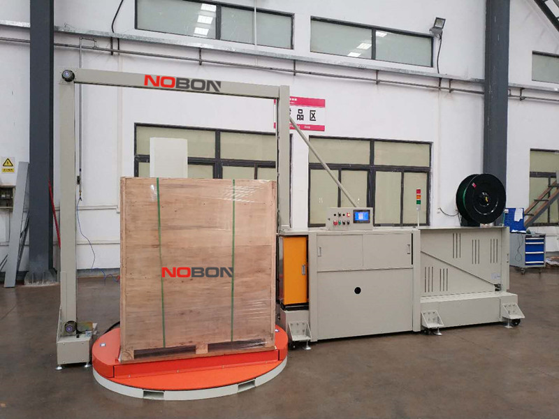 本機(jī)器為全自動纏繞機(jī)搭配全自動穿箭打包機(jī)實(shí)現(xiàn)打包一體機(jī),配備遙控器遠(yuǎn)程使用,全程只需要按一個(gè)啟動按鈕。