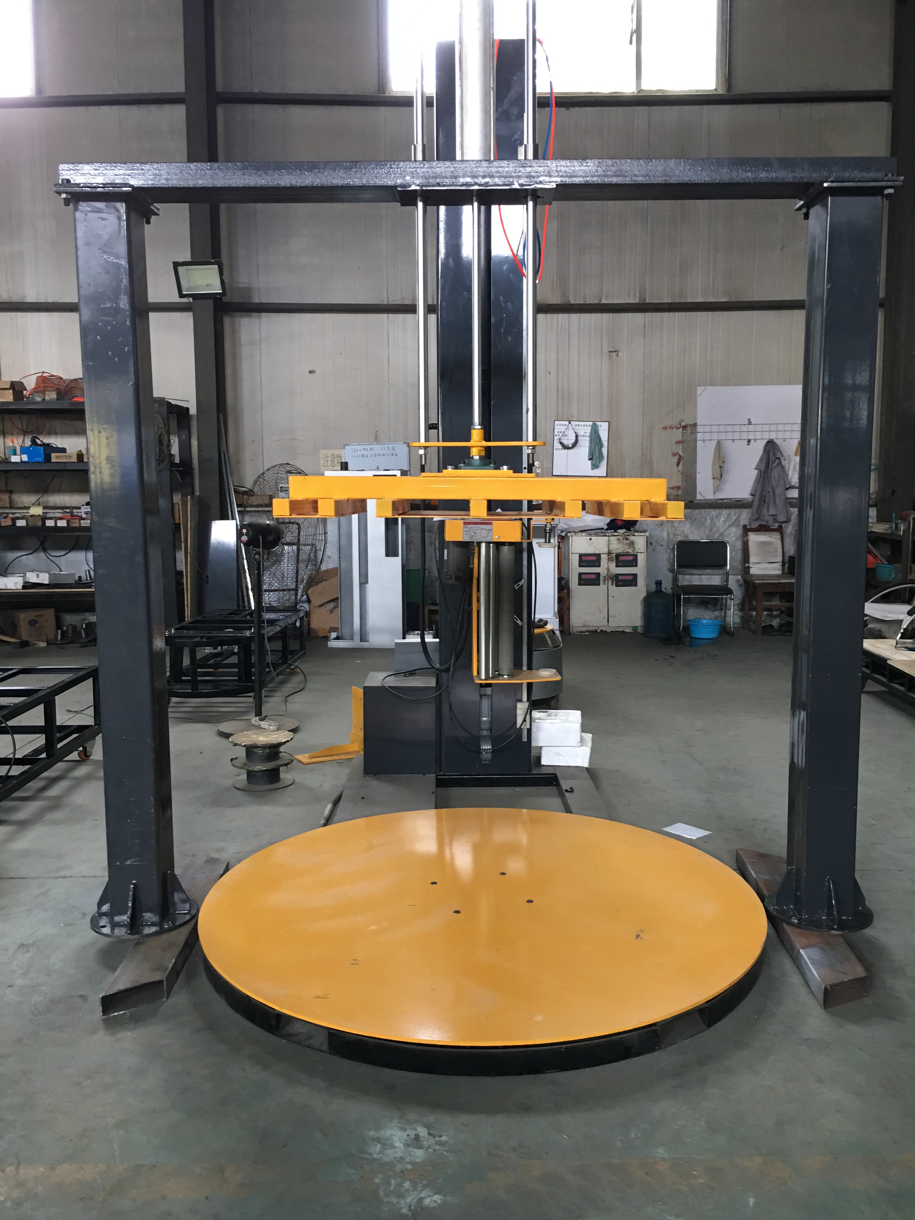 1、貨物比較散。所謂的貨物比較散,最典型的就是一個(gè)托盤上面落很多產(chǎn)品,在轉(zhuǎn)盤轉(zhuǎn)動或者纏繞的過程中貨物容易散落,這種情況下就需要選擇壓頂纏繞